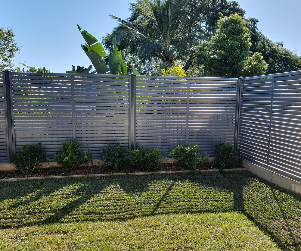 COLORBOND fencing with 17mm slat spacing. Moderatetly private spacing option.