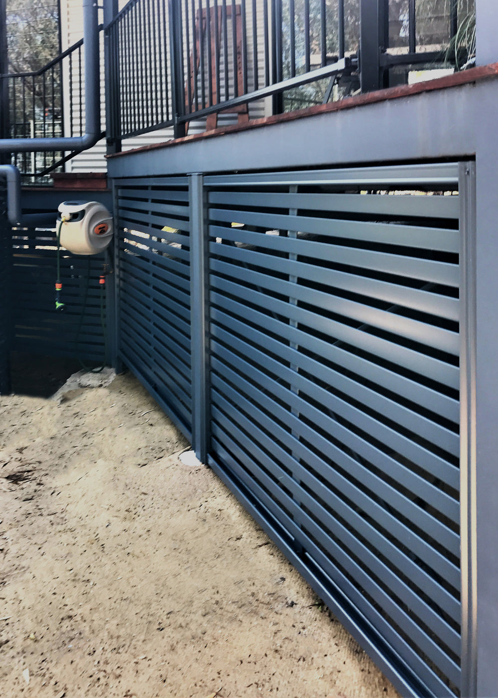 Transform unused undercroft space beneath homes or decks with the Clik’n’Fit® system. These panels provide a neat and secure way to screen off storage areas, conceal foundations, or protect tools and equipment. The modular design makes for easy installation on sloped or uneven ground, while COLORBOND® finishes ensure durability and visual consistency.