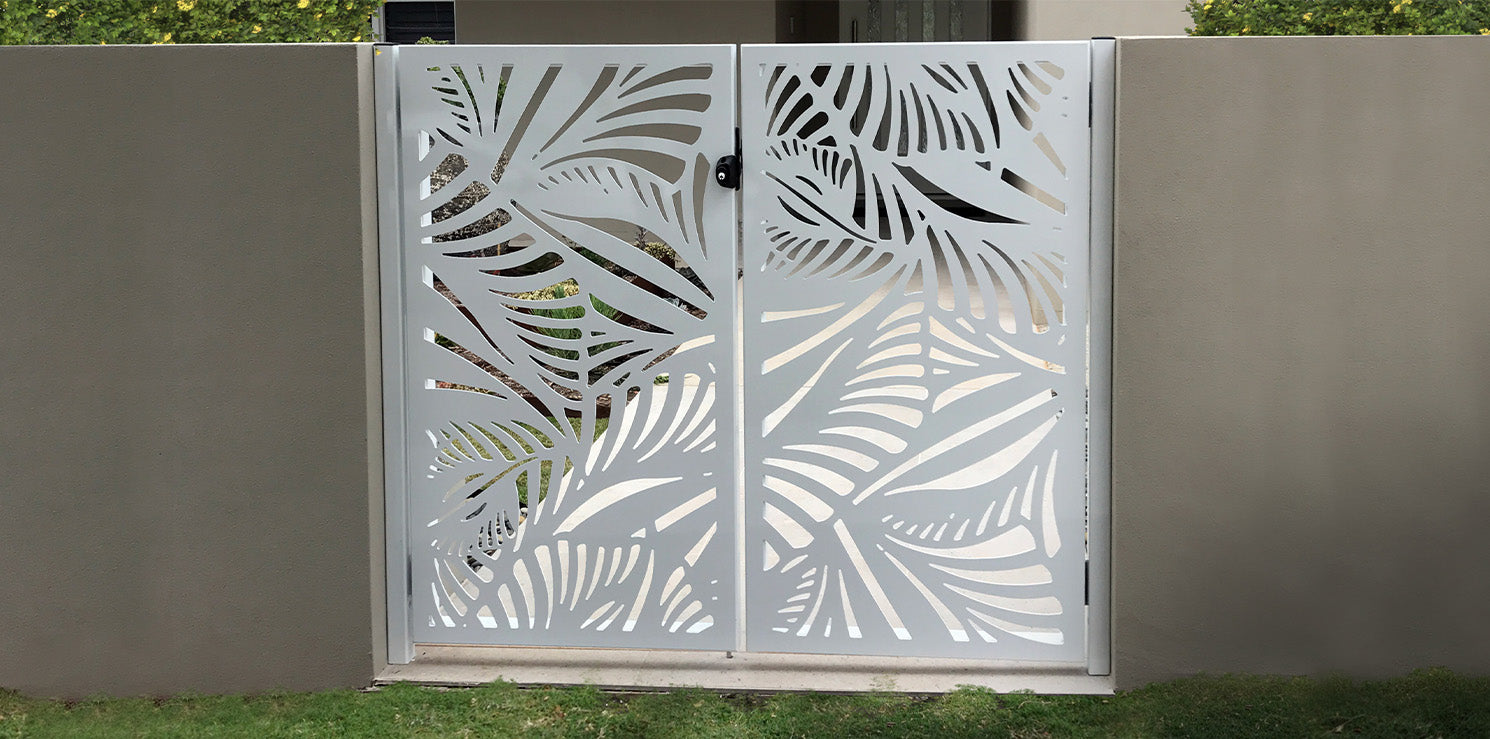 For those who prefer hedges and naturally made boundaries, compliment your living fence with botanical inspired aluminium gate. Natural world designs without the extra pruning.