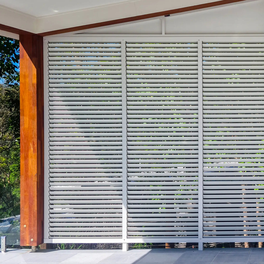 Shutter-style privacy screens offer clean lines and functional design, perfect for windows, patios, or alfresco areas. With fixed or adjustable blade options, these shutters help manage heat, light, and privacy throughout the day. Built from strong, powder-coated aluminium, they’re designed to withstand the Australian climate with ease.