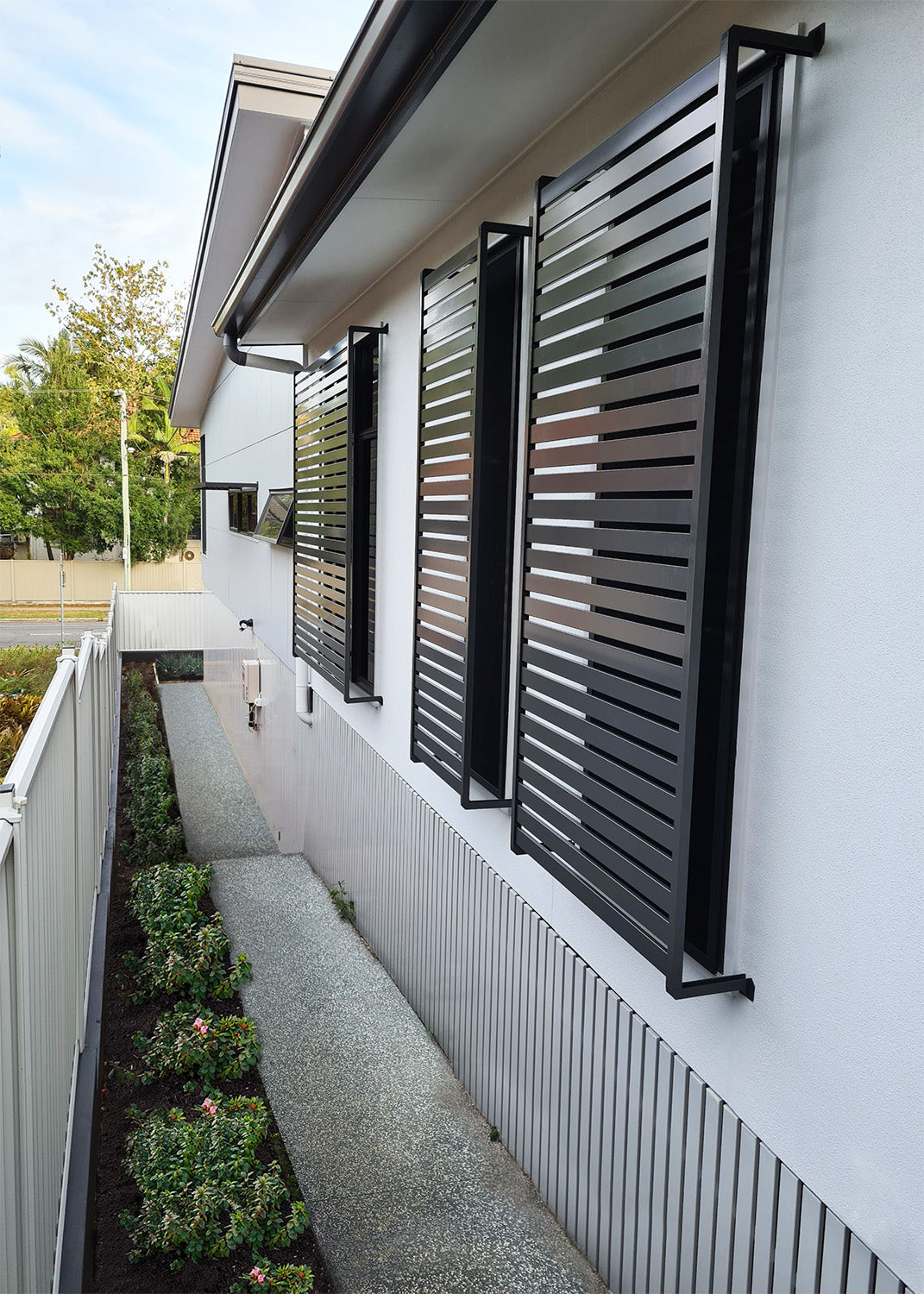 DIY and simple to install, our window screens come in a range of colours, styles, and sizes to suit your decor. We offer slat and louvre screens in standard colours available off-the-shelf which means you can shop online or over the counter for fast delivery. The perfect solution for meeting BASIX and council privacy regulations.